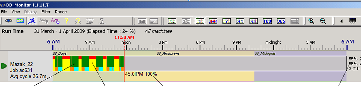 This is a picture of a real-time graphic presentation of one machine between 6:00am and noontime.